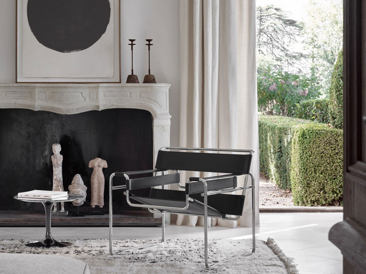 Designad Lounge Chair från 1990-talets mest ikoniska klassiker, den skapar tillsammans en stilren loungegrupp. Stolen har en ram av böjda stålrör, och sittdelen samt ryggstödet är gjort utav konstläder.